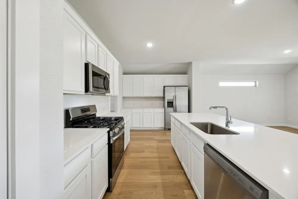 Creatively designed to accommodate the needs of everyone, the Heisman is a unique plan. The main living area is expansive, encompassing the island kitchen, dining area and family room. Invite the football team for an after-party or snuggle up for a movie as the room easily adapts to your needs. Outstanding storage capacity is another feature, with a walk-in pantry, large utility room, walk-in closet in the primary suite and extra space in the garage.