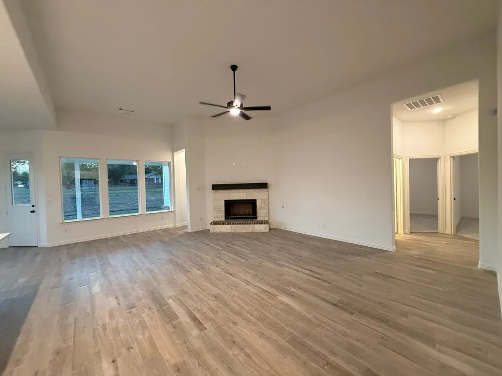 Step into the Bluebonnet by Riverside Homebuilders and embrace a lifestyle of comfort and functionality. With 4 bedrooms and 3 bathrooms sprawled over 2,686 square feet, this single-story haven offers ample space for every member of the family. As you enter through the inviting porch, the airy foyer sets the tone for the home's open layout. To the left, a flex room awaits, beckoning to be transformed into your ideal spacewhether you envision a home office, gym or hobby room. Continue through the foyer to discover the heart of the homea luminous dining room bathed in natural light. Beyond lies the main living area, a seamless fusion of the expansive kitchen, cozy family room featuring a fireplace and a charming nook adorned with picturesque windows. On the right wing of the home, privacy awaits with three traditional bedrooms and a breathtaking owner's suite. The owner's retreat boasts a spacious walk-in closet and a spa-like bathroom, offering a sanctuary for relaxation. Convenience is paramount with the laundry situated just off the bedrooms, accompanied by a mud bench near the garage entrance. To embrace the beautiful DFW weather without having to leave your home, step outside to the generous covered patiowhere endless possibilities for outdoor enjoyment await. With its thoughtful design and inviting atmosphere, the Bluebonnet embodies the epitome of charming Texas living for all families alike.