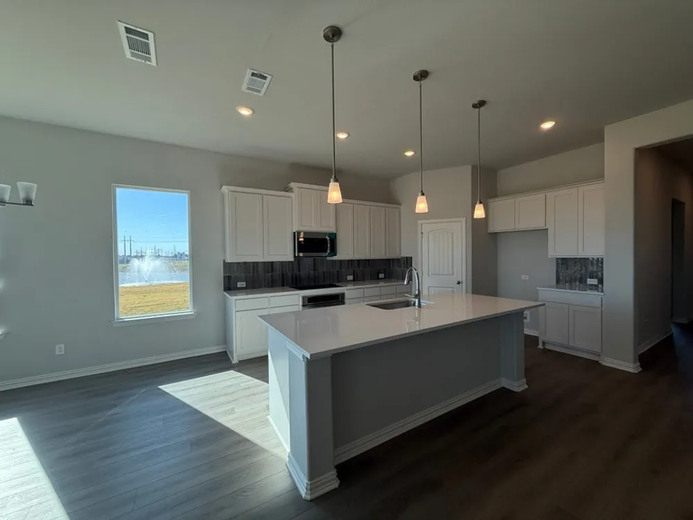 The Verbena floor plan features a modern, open-concept layout and the sought-after features todays homeowners are searching for. With four bedrooms, three bathrooms, and a flex room, this plan boasts just over 2,400 square feet of functional living space. Upon entering the home off the front porch, youre welcomed by an inviting foyer. Immediately to the left is a hallway with a bedroom, walk-in closet and full bathroom, as well as a linen closet. Across the foyer is a flex room, perfect for a home office, formal dining room or whatever need your family has for the space. Past the foyer is the family entry, with storage space and mud bench, which leads to the laundry room and two or three car attached garage. Through the entrance, the home opens up to a large family room with a stately fireplace. Adjacent to the family room is a gourmet kitchen, equipped with a walk-in pantry, ample counter space and an oversized island. Finishing off this open-concept living area is a dining space which overlooks the covered back patio. The remainder of this one-story floor plan is just off the living space. A hall leads to two bedrooms with walk-in closets, another linen closet and a shared full bathroom. The back corner of the home offers privacy for the owners suite, featuring a massive walk-in closet and bathroom with a dual-sink vanity, standalone soaking tub and glass-enclosed shower.
