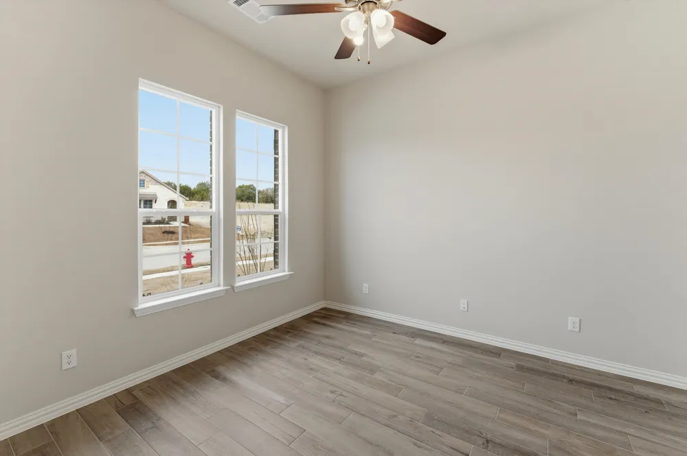 At Riverside Homebuilders, we pride ourselves in providing unique homes with floor plans that are as individual as our customers. This 3-bedroom, 2-bathroom home has a galley feel with an open floor plan. Walking into the grand foyer youll find yourself right at the entrance of the kitchen being welcomed by scents of freshly-baked cookies or a mouthwatering meal being prepared. The flex room in the front of the home can be easily utilized as another bedroom if needed or a den for reading and relaxing. Through the kitchen, youll find the cabinets open to the dining and living rooms at the heart of the home. A corner pantry gives you plenty of storage for snacks, canned goods, small appliances, and planning for a rainy day. To the right of the dining room lies the 2-bedroom wing. Whether for kids or guests, these rooms offer plenty of space with the convenience of their own full bathroom. Or, if youre a new family preparing for your first little one, the secondary bedroom is close enough to the owners bedroom to feel safe having your baby sleep in their crib. The owners suite is nicely situated in the back corner with its own hallway to create the feel of your own private getaway. Enter the L-shaped bathroom through magnificent double doors. This floor plan offers one of our largest walk-in closets; weve maximized the space to offer enough room to change into that perfect outfit. Never track mud into your home again because the San Gabriel II has the laundry room situated off the garage. The unique layout of this home gives you the chance to do something different than all your friends while still providing a comfortable space to live and entertain.