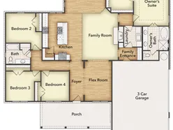 We are excited to introduce a brand new floor plan called the Salado! The entry is open to a bright flex Room on the right. The private owner's suite is separate from bedrooms 2 through 4. The owner's suite is complete by including a garden tub, separate shower, private commode, walk in closet, and dual, separate vanities. Adjacent to the owner's suite is the large living room with a fireplace option and open to the spacious island kitchen.