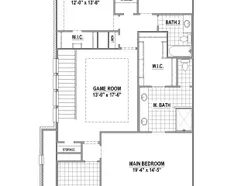 Delightful 2 story plan with main bedroom and 2 secondary bedrooms upstairs with 2 full baths, 1 powder bath for guests downstairs,1 dining area, electric fireplace, large game room, covered outdoor living space and 2-car garage situated with a West facing front door. This home features a popular light brick and gray stone elevation, a spacious family room open to a large kitchen and dining room great for entertaining, loads of kitchen cabinets, great furniture island with sink, oversized utility room with sink, mud bench and a huge main bedroom retreat upstairs great for young families wanting the secondary bedrooms on the same floor. Amenities include transitional color scheme with beautiful light colored prefinished wood floors downstairs, light gray painted kitchen cabinets, dramatic dark stained wood tread staircase with white painted risers, matte black finish lighting package and plumbing package, black metal stair balusters, elegant quartz kitchen tops and leathered marble main bath countertops, frameless main shower, beautiful kitchen splash and bath tiles, upgraded sculpted carpet and much more.