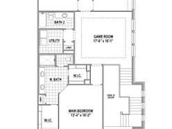 Popular 2 story design with 3 bedrooms, 2 full baths, 1 powder bath, 1 dining area, electric fireplace, game room and covered outdoor living situated with a South facing front door on a lot adjacent to a HOA greenbelt. This home features a two story foyer with staircase boasting natural light from rising windows, a spacious kitchen with island open to a large family room and dining area great for entertaining, bountiful kitchen cabinets, walk-in pantry, transitional furniture island and utility room with sink and main bedroom with dual main closets. Amenities include transitional color scheme with beautiful light colored prefinished wood floors all downstairs, beautiful quartz kitchen countertops and slab splash, decorative wood hood, shaker style cabinets, stained oak wood tread staircase with painted risers, matte black finish lighting package and plumbing package, black metal stair balusters, frameless main shower, upgraded carpet and pad and much more.