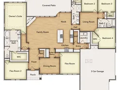 Discover the allure of the Foxglove, an epitome of sophistication and comfort crafted by Riverside Homebuilders. This luxurious one-story abode spans 3,497 square feet, offering 4 bedrooms and 3 bathrooms, meticulously designed for modern living. With a 3-car garage and a thoughtful layout, convenience and elegance seamlessly intertwine to create an unparalleled living experience. As you step through the front porch, you're greeted by an open and airy foyer, setting the tone for the home's inviting atmosphere. To the right, a luminous dining room awaits, perfect for hosting memorable gatherings with friends and family. Adjacent to the foyer, discover two versatile flex rooms, adaptable to your every needwhether it be a home gym, office or creative space. Continue through to the heart of the home, where the magic unfoldsa sprawling family room adorned with a cozy fireplace, nestled near a charming nook and a chef-inspired kitchen boasting ample counter space and storage areas. On the right side of the home, three traditional bedrooms each feature a walk-in closet and are accompanied by two bathrooms for utmost convenience. The laundry room further enhances functionality, making chores a breeze. For added entertainment, indulge in the media room, ensuring every member of the family has a space to fulfill their passions. On the opposite side, the owner's suite awaits, offering a sanctuary of luxury with top-quality features, a stunning owner's bath and an incredible walk-in closet. Lastly, step outside to the covered back patio, where you can bask in the gorgeous DFW weather and embrace outdoor living at its finest. In the Foxglove, luxury, convenience and versatility converge to create the perfect haven for modern living.