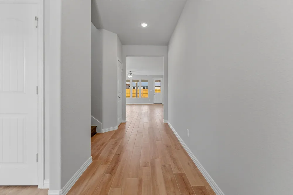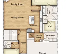 The four-bedroom Nueces floor plan is 2,858 square feet of functional living space. This two-story home was designed with every kind of homeowner in mindit exemplifies the importance of togetherness by offering spaces for families to gather, as well as spacious bedrooms so every person has an area to call their own. Upon entering the home from the two-car garage, youll walk through the mudroom with a built-in storage bench and pass the walk-in pantry and separate laundry room. The gourmet kitchen includes an island with overhang for seating, extravagant storage options and lots of counter space. Past the kitchen is the open-concept dining and family room that can be laid out to meet the needs and style preferences of your family. Through a short hallway youll find the oversized owner suite with a double-sink bathroom, soaking tub, separate shower and walk-in closet. Finishing off the main floor is a powder room and a flex room toward the front of the house that can be used as a home office, virtual learning space or playroom. The second floor opens up to a multi-purpose loft that would make a perfect second family room. It also includes three bedrooms, each with their own walk-in closets, two full bathrooms and an additional storage closet. Outside spaces include a welcoming front porch and large covered patio adjoining the back of the house.