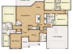 The 4-bedroom Colorado 3 presents a creative yet sensible layout of the homes 2,483 square feet of living space. Right from the front entrance, you can see the entire main living area. This open concept enhances the spacious feeling and makes it easy to have conversations no matter where you areperfect for entertaining! The kitchen is a definite eye-catcher in the Colorado 3. Weve incorporated a massive center island that doubles your counter space and provides comfortable seating for 4 people at the breakfast bar. You can also enjoy the view of the fireplace in the family room. If a formal dining room is on your new home wish list, check that off. Just a few steps from the kitchen, this floor plan has just the room for those special occasions. If formal isnt your thing, use this as a playroom or a living room. Across the foyer, the Colorado 3 also gives you a flex room to expand on the versatility. With a few small adjustments, you could convert it to a fifth bedroom. The design of the owner's suite is one of the (many) reasons people love this floor plan. The bedroom is nestled in the back of the home under a tray ceiling that accentuates the roominess. The Colorado 3 smartly uses space in the bathroom for both a soaking tub and step-in shower, along with dual vanities and a private water closet. Then your suite is completed with an expansive walk-in closet with wooden shelves and racks ready and waiting for your wardrobe. The 3 secondary bedrooms are clustered in a suite-like space on the other side of the homes layout. Two of them offer a walk-in closet, while the third one gives just a little bit more floor space. The 3 bedrooms share the homes second full bath. For a home that creates the ideal balance between togetherness and privacy, the Colorado 3 is fit to be tried!