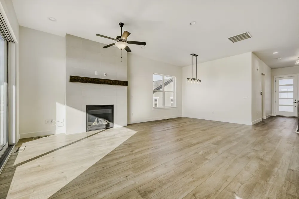 This thoughtfully designed ranch home offers 4 bedrooms, 3 full baths and a 3-car garage, combining comfort, style and functionality. The open-concept main level features a cozy family room with a floor-to-ceiling fireplace, a gourmet kitchen with upgraded cabinetry, stainless steel appliances, a large island and a bright dining area, perfect for both daily living and entertaining. The main suite includes a spacious walk-in closet and a luxurious en suite bath with dual vanities and a walk-in shower. A guest bedroom and full bath are also located on the main floor, along with a convenient laundry room near the 3-car garage entrance. The finished walk-out basement offers expanded living space with a large recreation room, two additional bedrooms and a full bath, ideal for guests, hobbies or entertainment. A stylish wet bar adds extra function and charm to the lower level. Additional upgrades include custom closets with built-in shoe racks, upgraded countertops and fixtures, a tankless water heater and a 96% efficiency-rated furnace, making this home as efficient as it is beautiful. This home is fully landscaped and fenced. Incredible Mountain views!!