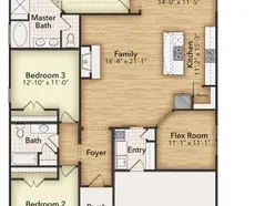 Experience the feeling of home in our Cascade II floor plan. Welcome family and friends into this 3-bedroom, 2-bath, ranch-style home with a spacious open floor plan. From cooking to dining to relaxing by the fire, this continuous design lends itself to entertaining for all occasions. As you walk through the foyer, to the left, the second and third bedrooms are perfectly situated for a private guest getaway. On the right, utilize the flex room for a home office, craft room or play area for young kids. This unique space offers the chance to customize your home to fit the needs of your family. Continuing through to the open kitchen, the extended countertops and island are the ideal workspace for anything from a simple family dinner to a culinary masterpiece. A walk-in pantry with two walls of storage means maximum space for all your snacks and ingredients. Situated in the back corner, the owners suite is the epitome of space and comfort. With a door right off the family room, this bedroom gives you a lot of natural light and easy access to the outdoor covered patio. A double-sink vanity means youll never have to share space again. Complete with a stand-up shower, tub, and walk-in closet, this space has all the amenities for ideal living.