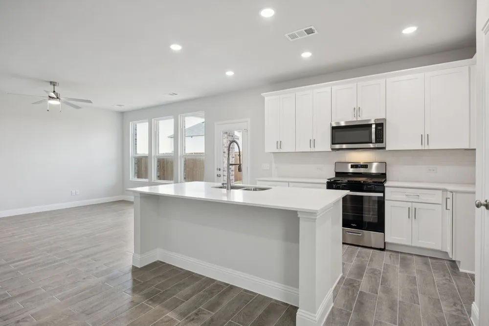 Scarlett Plan - 2.99 Percent FIXED RATE for a 30 Year Mortgage (3.75 Percent APR) on Select Homes for a Limited Time Only - Lagoon life is coming to Crandall ISD! Santorini is a peaceful Seagoville community that blends suburban charm with rural tranquility. Designed for wellness and relaxation, this master-planned neighborhood features amenities like a swim-up bar, fitness center, and sixteen-lane bowling alley. With top-rated schools and a strong sense of community, Santorini offers a retreat from the hustle and bustle, perfect for families seeking comfort and connection. Megatel Homes Scarlett plan is a 2-story, 2,015 square foot home featuring 4 spacious bedrooms, 3 bathrooms, a covered patio, and a 2-car garage. Thoughtfully designed for modern living, this plan features an open-concept layout and smart, functional design, perfect for everyday comfort and effortless entertaining. Situated on a 40 ft lot, this home is available with elevation B, showcasing a distinct and stylish exterior design.