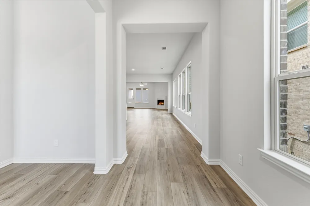 The San Saba has been a popular choice of homebuyers since we first introduced it. With the San Saba III, Riverside Homebuilders has taken the best features and expanded this flexible home design. The latest version of the floor plan adds nearly 100 square feet, totaling 2,266 square feet of interior living space. Weve kept the 3 bedrooms and 2 baths from the original floor plan, along with the walk-in closet for each of the bedrooms. The owners suite maintains the elegance of the tray ceiling in the bedroom and the spacious, smart design of the en suite bathroomwith both a soaking tub and walk-in shower, plus dual vanities and private water closet. In the San Saba III, the open concept spans the full length of this single-level home. Weve situated the kitchen a bit differently, making it quicker to access the laundry and mudrooms by the garages family entrance. The pantry is incorporated into the mudroom space, so unloading groceries is a simpler task. With the entrance from the foyer, the flex room in the San Saba III can easily function as a formal dining or living room. Add double doors, if you like, and the space works well as a home office or study. Maybe you want a fourth bedroom in your new home. This room is standard with a closet so it can easily be adapted to fill that role. The open concept in the main living area and the thoughtful placement of the bedrooms with vestibule entry presents the perfect balance of togetherness and privacy. Add in the covered patio for an outside living space that extends the comfort of this Riverside home.