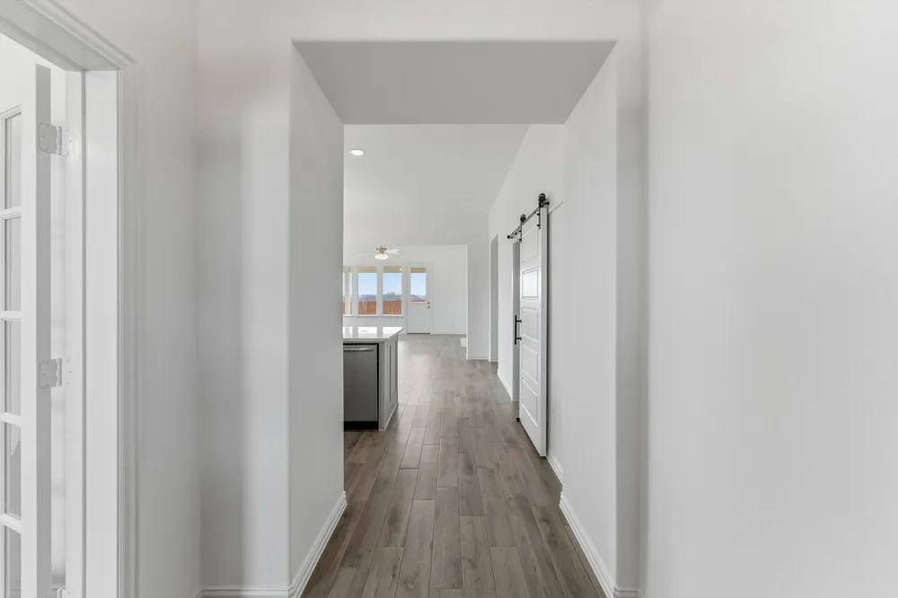 At Riverside Homebuilders, we pride ourselves in providing unique homes with floor plans that are as individual as our customers. This 3-bedroom, 2-bathroom home has a galley feel with an open floor plan. Walking into the grand foyer youll find yourself right at the entrance of the kitchen being welcomed by scents of freshly-baked cookies or a mouthwatering meal being prepared. The flex room in the front of the home can be easily utilized as another bedroom if needed or a den for reading and relaxing. Through the kitchen, youll find the cabinets open to the dining and living rooms at the heart of the home. A corner pantry gives you plenty of storage for snacks, canned goods, small appliances, and planning for a rainy day. To the right of the dining room lies the 2-bedroom wing. Whether for kids or guests, these rooms offer plenty of space with the convenience of their own full bathroom. Or, if youre a new family preparing for your first little one, the secondary bedroom is close enough to the owners bedroom to feel safe having your baby sleep in their crib. The owners suite is nicely situated in the back corner with its own hallway to create the feel of your own private getaway. Enter the L-shaped bathroom through magnificent double doors. This floor plan offers one of our largest walk-in closets; weve maximized the space to offer enough room to change into that perfect outfit. Never track mud into your home again because the San Gabriel II has the laundry room situated off the garage. The unique layout of this home gives you the chance to do something different than all your friends while still providing a comfortable space to live and entertain.