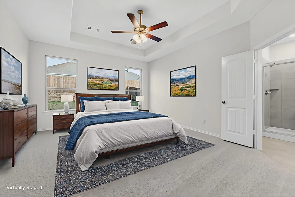 The San Saba has been a popular choice of homebuyers since we first introduced it. With the San Saba III, Riverside Homebuilders has taken the best features and expanded this flexible home design. The latest version of the floor plan adds nearly 100 square feet, totaling 2,266 square feet of interior living space. Weve kept the 3 bedrooms and 2 baths from the original floor plan, along with the walk-in closet for each of the bedrooms. The owners suite maintains the elegance of the tray ceiling in the bedroom and the spacious, smart design of the en suite bathroomwith both a soaking tub and walk-in shower, plus dual vanities and private water closet. In the San Saba III, the open concept spans the full length of this single-level home. Weve situated the kitchen a bit differently, making it quicker to access the laundry and mudrooms by the garages family entrance. The pantry is incorporated into the mudroom space, so unloading groceries is a simpler task. With the entrance from the foyer, the flex room in the San Saba III can easily function as a formal dining or living room. Add double doors, if you like, and the space works well as a home office or study. Maybe you want a fourth bedroom in your new home. This room is standard with a closet so it can easily be adapted to fill that role. The open concept in the main living area and the thoughtful placement of the bedrooms with vestibule entry presents the perfect balance of togetherness and privacy. Add in the covered patio for an outside living space that extends the comfort of this Riverside home.