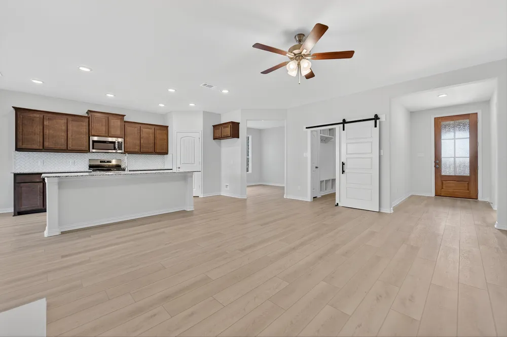 Experience the feeling of home in our Cascade II floor plan. Welcome family and friends into this 3-bedroom, 2-bath, ranch-style home with a spacious open floor plan. From cooking to dining to relaxing by the fire, this continuous design lends itself to entertaining for all occasions. As you walk through the foyer, to the left, the second and third bedrooms are perfectly situated for a private guest getaway. On the right, utilize the flex room for a home office, craft room or play area for young kids. This unique space offers the chance to customize your home to fit the needs of your family. Continuing through to the open kitchen, the extended countertops and island are the ideal workspace for anything from a simple family dinner to a culinary masterpiece. A walk-in pantry with two walls of storage means maximum space for all your snacks and ingredients. Situated in the back corner, the owners suite is the epitome of space and comfort. With a door right off the family room, this bedroom gives you a lot of natural light and easy access to the outdoor covered patio. A double-sink vanity means youll never have to share space again. Complete with a stand-up shower, tub, and walk-in closet, this space has all the amenities for ideal living.