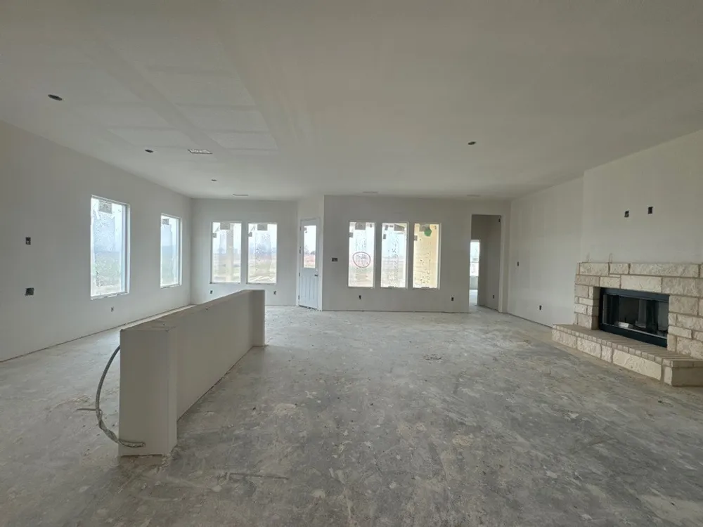 The Verbena floor plan features a modern, open-concept layout and the sought-after features todays homeowners are searching for. With four bedrooms, three bathrooms, and a flex room, this plan boasts just over 2,400 square feet of functional living space. Upon entering the home off the front porch, youre welcomed by an inviting foyer. Immediately to the left is a hallway with a bedroom, walk-in closet and full bathroom, as well as a linen closet. Across the foyer is a flex room, perfect for a home office, formal dining room or whatever need your family has for the space. Past the foyer is the family entry, with storage space and mud bench, which leads to the laundry room and two or three car attached garage. Through the entrance, the home opens up to a large family room with a stately fireplace. Adjacent to the family room is a gourmet kitchen, equipped with a walk-in pantry, ample counter space and an oversized island. Finishing off this open-concept living area is a dining space which overlooks the covered back patio. The remainder of this one-story floor plan is just off the living space. A hall leads to two bedrooms with walk-in closets, another linen closet and a shared full bathroom. The back corner of the home offers privacy for the owners suite, featuring a massive walk-in closet and bathroom with a dual-sink vanity, standalone soaking tub and glass-enclosed shower.