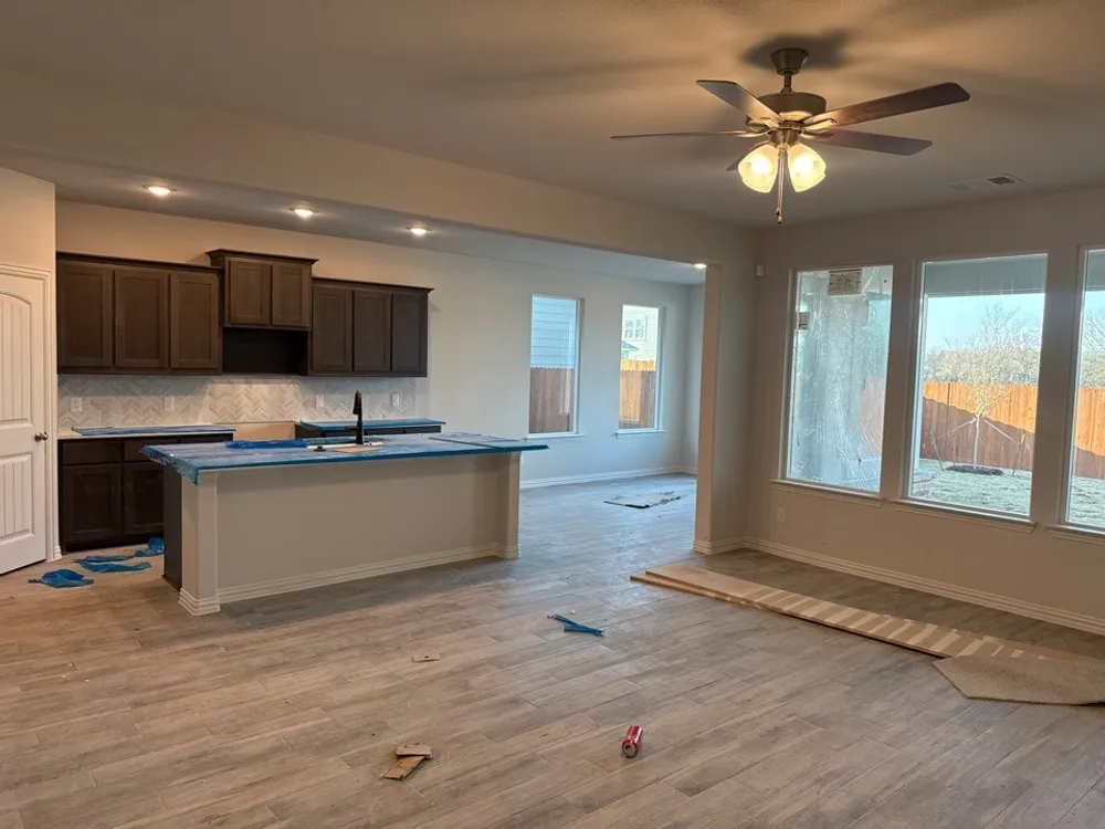 The Lavon floor plan provides all the space needed for a growing family. Welcomed by a pillared front porch, the long foyer opens into a grand family room complete with a fireplace. Gathering in this home is easy with the seamless transition from room to room. The kitchen is positioned against the back wall as the stage so you can look out and observe all things going on. With three equally-sized spare bedrooms, youll have space for your family and any visitors. A walk-in mudroom off the garage allows for more storage of shoes, bags, and all your day-to-day items. The Lavon home is perfect for a busy and active family needing space to come together as well as everyones own private space. The owners suite is a perfect getaway, tucked in the back corner past the family room. Entering this space, youll have a splendid view into the backyard. All the natural light will make this oasis feel even more tranquil. The bedroom leads into the owner's bath with a double-sink vanity, stand-up shower, and tub perfect for unwinding after a long day. Theres no shortage of storage in this luxurious ranch-style home with closets in every room, extended countertops in the kitchen, corner pantry, and coat closet. Bring your family home to the Lavon floor plan and enjoy all the comfort of room to spread out and relax, teamed with the highest quality product.
