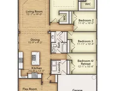 The Havasu III provides a versatile twist on the open concept. A clearly defined foyer and flex room gives definition to this entryway. The kitchen and dining room are one unified area giving you enough space for a large table where the entire family can gather together for a meal. An oversized living room presents the freedom for customization without compromise. Go for a large sectional to spread out on or several individual pieces to create a unique design. With three secondary bedrooms, the possibilities to personalize are endless. The smallest room is right around the corner from the owners suite, making it the ideal nursery or toddlers bedroom. In the center of the home lies the third bedroom and a jack-and-jill bathroom with easy access to both hallways off the dining and living space. Toward the front of the home, the fourth bedroom is a great retreat for your guests to feel they have their own space when they come to visit. The laundry room is right off the kitchen and has an entrance to the 2-car garage, allowing it to double as a mudroom. This will prevent any muddy shoes from tracking dirt throughout your home. You can also enjoy beautiful Texas days on the patio right off the living room. Perfect your barbequing or spend time with your kids in the backyard. The Havasu III is a great option for growing families who need privacy but still come together at the end of the day for quality time.
