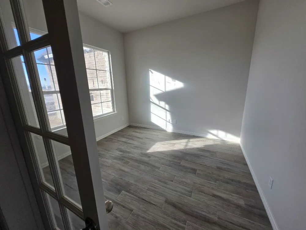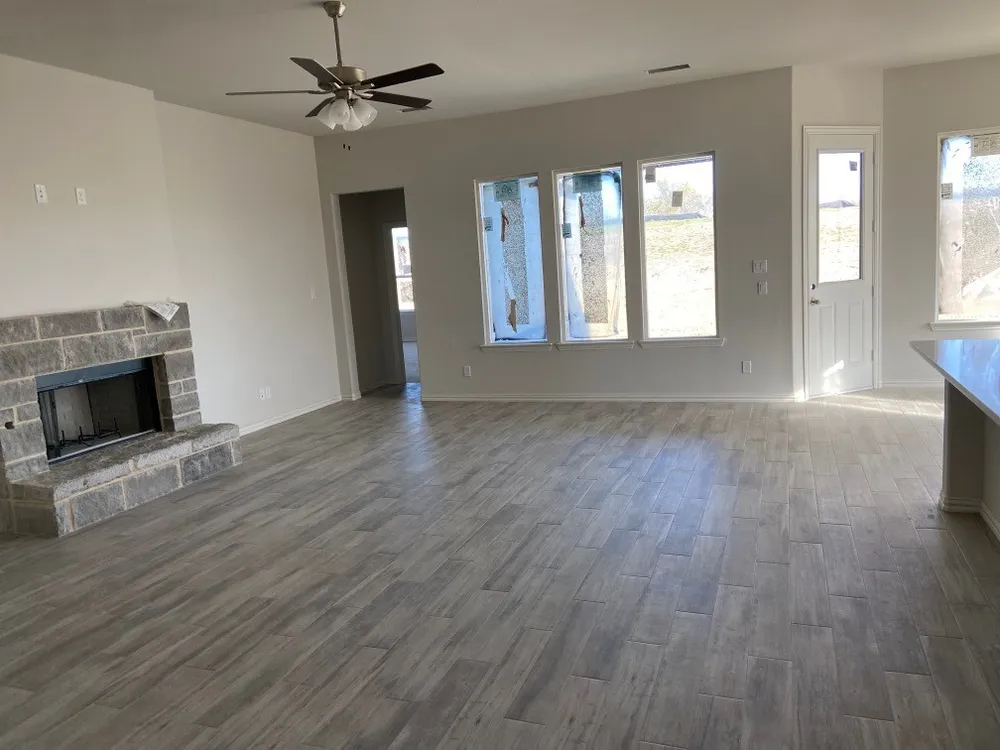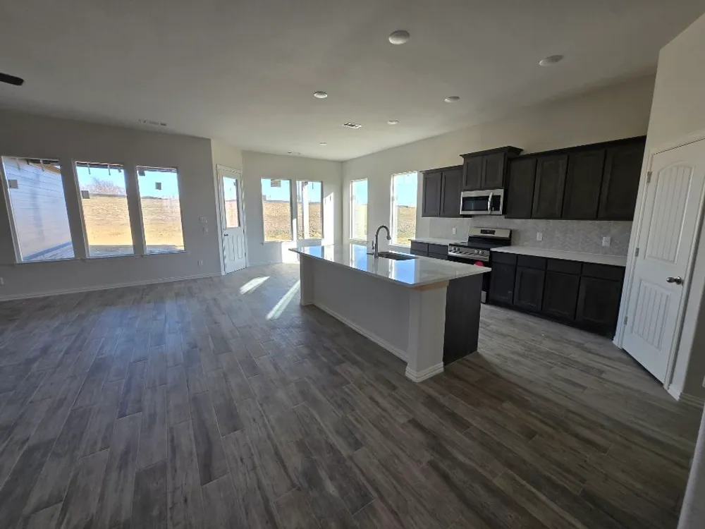 The Verbena floor plan features a modern, open-concept layout and the sought-after features todays homeowners are searching for. With four bedrooms, three bathrooms, and a flex room, this plan boasts just over 2,400 square feet of functional living space. Upon entering the home off the front porch, youre welcomed by an inviting foyer. Immediately to the left is a hallway with a bedroom, walk-in closet and full bathroom, as well as a linen closet. Across the foyer is a flex room, perfect for a home office, formal dining room or whatever need your family has for the space. Past the foyer is the family entry, with storage space and mud bench, which leads to the laundry room and two or three car attached garage. Through the entrance, the home opens up to a large family room with a stately fireplace. Adjacent to the family room is a gourmet kitchen, equipped with a walk-in pantry, ample counter space and an oversized island. Finishing off this open-concept living area is a dining space which overlooks the covered back patio. The remainder of this one-story floor plan is just off the living space. A hall leads to two bedrooms with walk-in closets, another linen closet and a shared full bathroom. The back corner of the home offers privacy for the owners suite, featuring a massive walk-in closet and bathroom with a dual-sink vanity, standalone soaking tub and glass-enclosed shower.