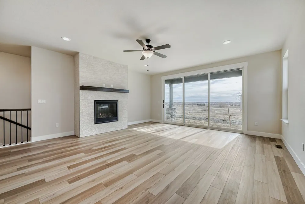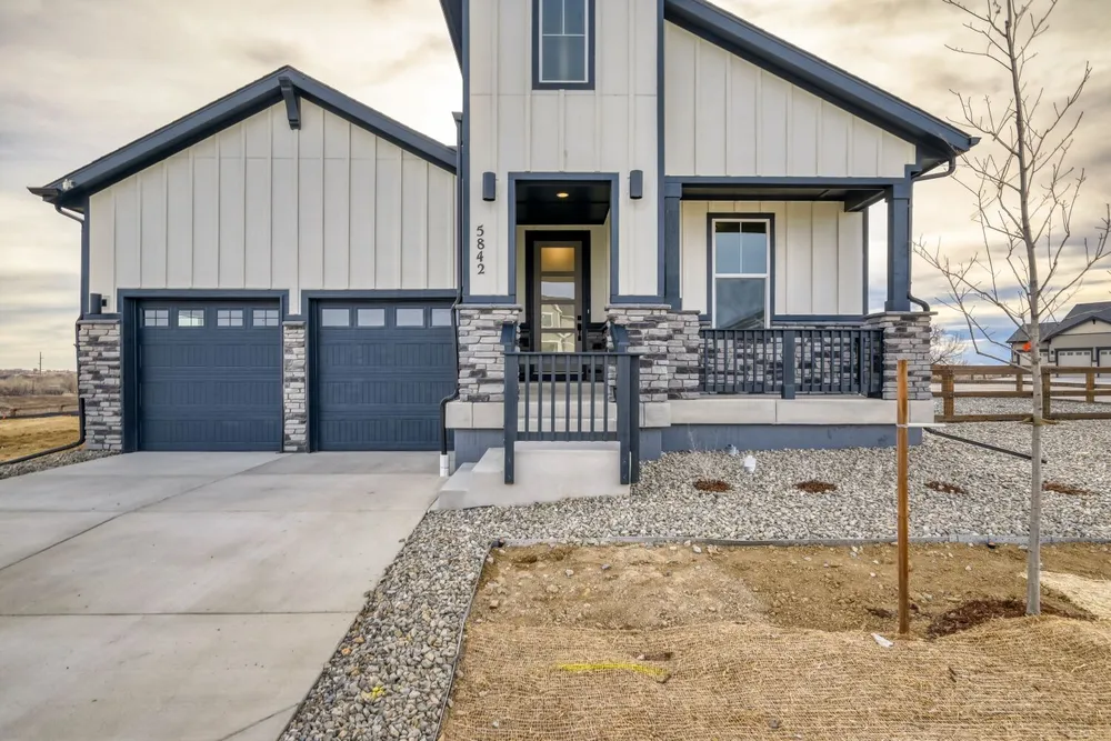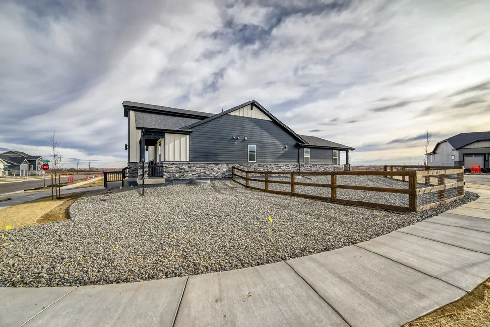 This 3 bedroom Ranch home includes 2 baths and a full unfinished basement! This home has a charming front porch and perfect curb appeal. Enjoy a large and open family room, dining room and kitchen on the main level. This stunning home has designer features throughout, including a gourmet kitchen, a fireplace in the great room, matte black hardware, sleek quartz counter-tops and beautiful trim work. There are upgraded cabinets with soft-close doors and soft-close dovetail drawers. Kitchen appliance package includes stainless steel with a 36" 5-burner gas cook-top, an exterior vented hood, microwave and convection oven. Home also features A/C and smart thermostats. Enjoy the covered outdoor patio for evening meals and summer entertainment. This large corner lot is fully fenced. Enjoy lake living where you can paddle board, kayak and fish. Enjoy miles of trails in the community where you can take a sunset stroll, enjoy a bike ride or take the dog for a walk. Other amenities include basketball and pickleball courts, fitness stations, outdoor grills & fire-pits, a pavilion lawn, a resort style outdoor pool (with a splash pad for kids) and a beautiful indoor community hub with remote working stations and a fitness center.