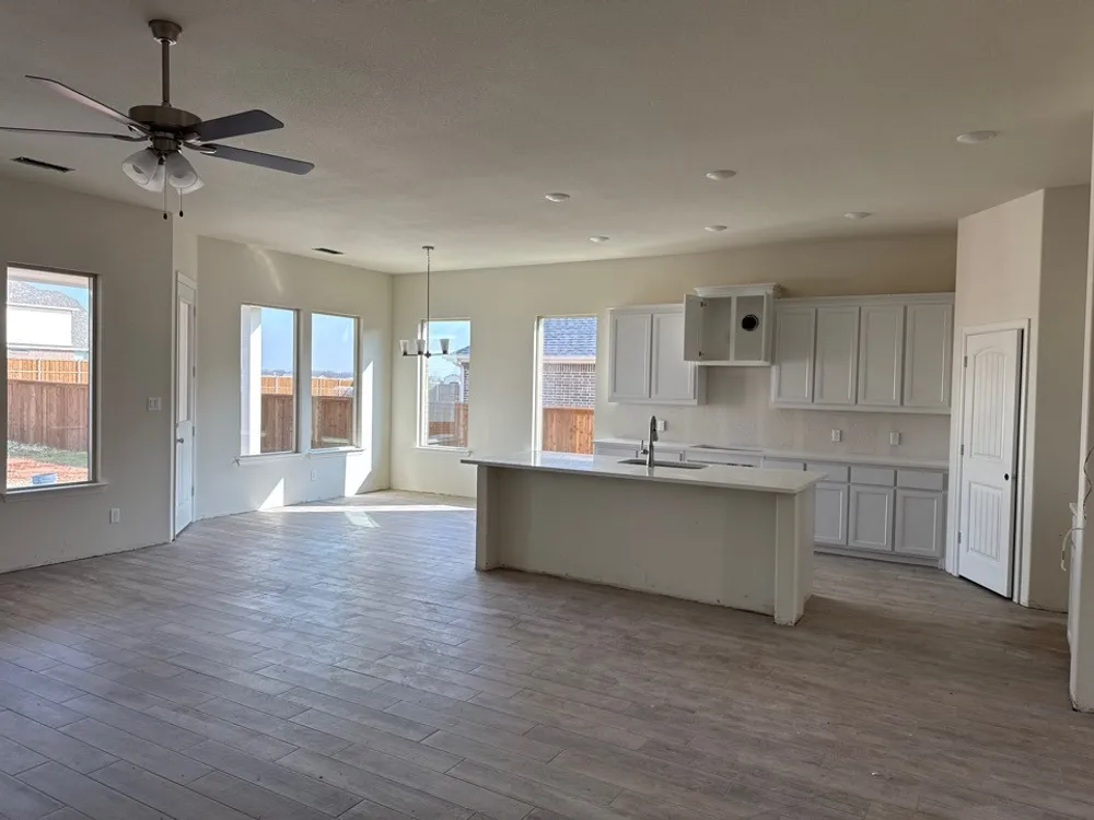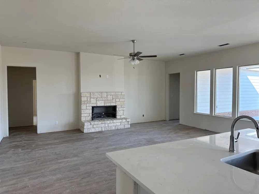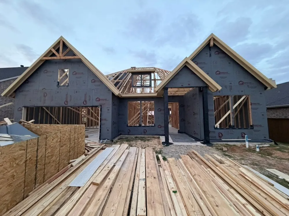 The Verbena floor plan features a modern, open-concept layout and the sought-after features todays homeowners are searching for. With four bedrooms, three bathrooms, and a flex room, this plan boasts just over 2,400 square feet of functional living space. Upon entering the home off the front porch, youre welcomed by an inviting foyer. Immediately to the left is a hallway with a bedroom, walk-in closet and full bathroom, as well as a linen closet. Across the foyer is a flex room, perfect for a home office, formal dining room or whatever need your family has for the space. Past the foyer is the family entry, with storage space and mud bench, which leads to the laundry room and two or three car attached garage. Through the entrance, the home opens up to a large family room with a stately fireplace. Adjacent to the family room is a gourmet kitchen, equipped with a walk-in pantry, ample counter space and an oversized island. Finishing off this open-concept living area is a dining space which overlooks the covered back patio. The remainder of this one-story floor plan is just off the living space. A hall leads to two bedrooms with walk-in closets, another linen closet and a shared full bathroom. The back corner of the home offers privacy for the owners suite, featuring a massive walk-in closet and bathroom with a dual-sink vanity, standalone soaking tub and glass-enclosed shower.