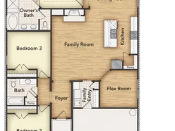 Experience the feeling of home in our Cascade II floor plan. Welcome family and friends into this 3-bedroom, 2-bath, ranch-style home with a spacious open floor plan. From cooking to dining to relaxing by the fire, this continuous design lends itself to entertaining for all occasions. As you walk through the foyer, to the left, the second and third bedrooms are perfectly situated for a private guest getaway. On the right, utilize the flex room for a home office, craft room or play area for young kids. This unique space offers the chance to customize your home to fit the needs of your family. Continuing through to the open kitchen, the extended countertops and island are the ideal workspace for anything from a simple family dinner to a culinary masterpiece. A walk-in pantry with two walls of storage means maximum space for all your snacks and ingredients. Situated in the back corner, the owners suite is the epitome of space and comfort. With a door right off the family room, this bedroom gives you a lot of natural light and easy access to the outdoor covered patio. A double-sink vanity means youll never have to share space again. Complete with a stand-up shower, tub, and walk-in closet, this space has all the amenities for ideal living.