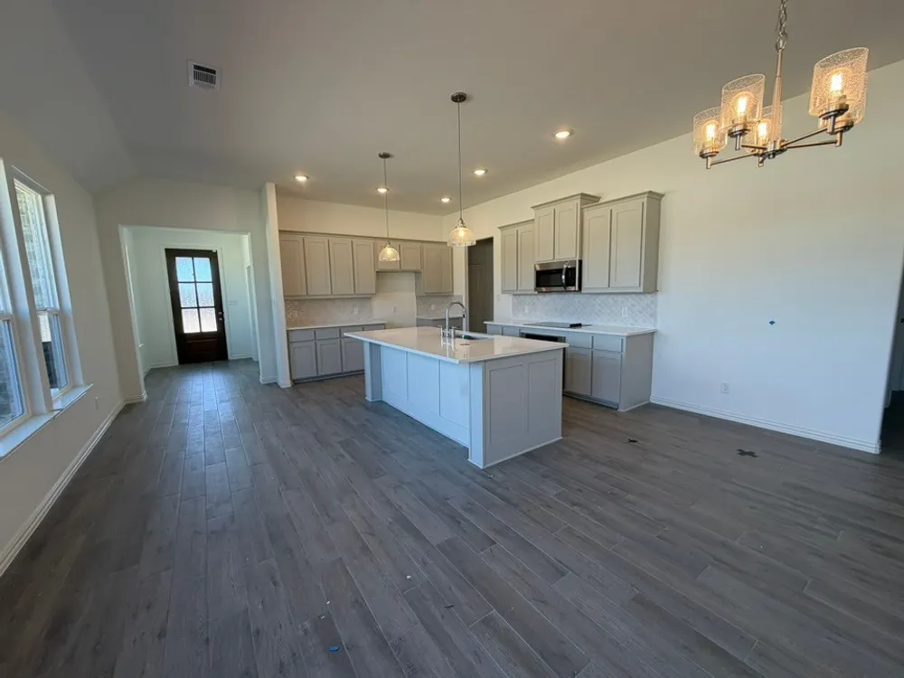 The San Saba has been a popular choice of homebuyers since we first introduced it. With the San Saba III, Riverside Homebuilders has taken the best features and expanded this flexible home design. The latest version of the floor plan adds nearly 100 square feet, totaling 2,266 square feet of interior living space. Weve kept the 3 bedrooms and 2 baths from the original floor plan, along with the walk-in closet for each of the bedrooms. The owners suite maintains the elegance of the tray ceiling in the bedroom and the spacious, smart design of the en suite bathroomwith both a soaking tub and walk-in shower, plus dual vanities and private water closet. In the San Saba III, the open concept spans the full length of this single-level home. Weve situated the kitchen a bit differently, making it quicker to access the laundry and mudrooms by the garages family entrance. The pantry is incorporated into the mudroom space, so unloading groceries is a simpler task. With the entrance from the foyer, the flex room in the San Saba III can easily function as a formal dining or living room. Add double doors, if you like, and the space works well as a home office or study. Maybe you want a fourth bedroom in your new home. This room is standard with a closet so it can easily be adapted to fill that role. The open concept in the main living area and the thoughtful placement of the bedrooms with vestibule entry presents the perfect balance of togetherness and privacy. Add in the covered patio for an outside living space that extends the comfort of this Riverside home.