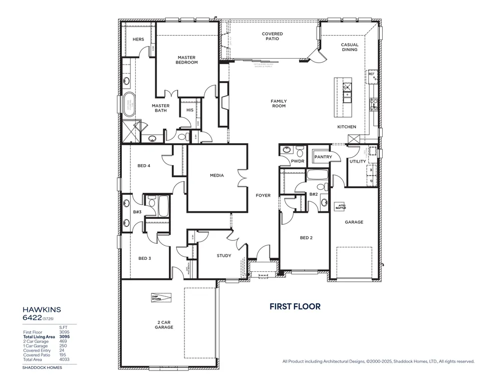 Looking for that single-story floor plan that has it all? Look no further than this beautiful open-concept design featuring a large primary suite with a free-standing tub, a separate shower, and separate his and her closets. There is also a centrally located media room and four bedrooms total, including an ensuite. Vaulted ceilings in the living room provide abundant natural light and offer views of the backyard and adjacent greenbelt. This is truly a must-see home, scheduled for completion just before summer 2026.