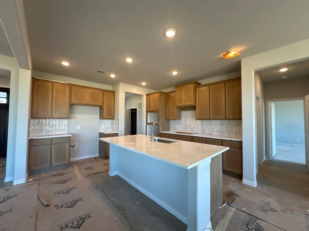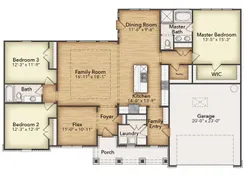 The Cibolo is a perfect example of how you can make a few adjustments to a floor plan to completely change the way it looks! We offer three options for the exteriorCraftsman, Farmhouse, and Europeanso you can choose your architectural preference. Inside, the 2,033-square-foot plan is designed with the busy family in mind. Keep all the main living concentrated in an open floor plan where walls dont divide you. Whether youre watching television in the large family room, entertaining in the dining room, or handling the kitchen duties, you can see everyone and everything. The kltchens center island functions like a hub. Sit down for a casual meal at the breakfast bar, sort the mail, catch up on the daily happenings, wash the dishes, or start prepping the next meal. Adjacent to the kitchen, you have the functional center of the home: mudroom and laundry. A hall bench and closet provide you with the organization you need to keep the clutter at bay. Your owner's suite is tucked away in the farthest corner of this single-level floor plan. Separated with a vestibule entrance, you have a private retreat. The owner's bath includes both a soaking tub and walk-in shower, plus dual vanities and a private water closet, so its very shareable. The other 2 secondary bedrooms of this split floor plan anchor the other side of the home where they share the second full bath. Both bedrooms are identically sized with plenty of space for anyone from a toddler to teen to another adult member of your household. The Cibolo also gives you the freedom of a flex room off the foyer. Convert it to the space you want to meet your needs.
