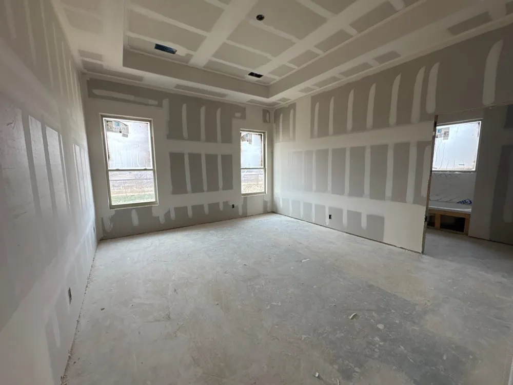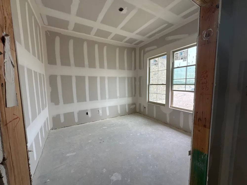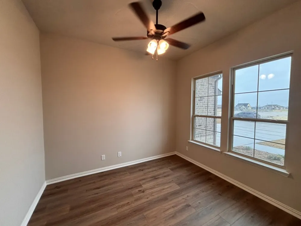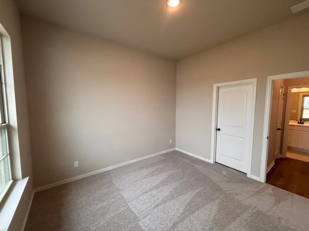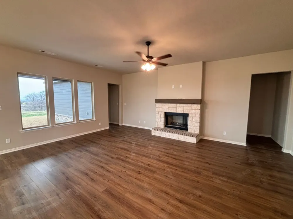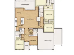 The Verbena floor plan features a modern, open-concept layout and the sought-after features todays homeowners are searching for. With four bedrooms, three bathrooms, and a flex room, this plan boasts just over 2,400 square feet of functional living space. Upon entering the home off the front porch, youre welcomed by an inviting foyer. Immediately to the left is a hallway with a bedroom, walk-in closet and full bathroom, as well as a linen closet. Across the foyer is a flex room, perfect for a home office, formal dining room or whatever need your family has for the space. Past the foyer is the family entry, with storage space and mud bench, which leads to the laundry room and two or three car attached garage. Through the entrance, the home opens up to a large family room with a stately fireplace. Adjacent to the family room is a gourmet kitchen, equipped with a walk-in pantry, ample counter space and an oversized island. Finishing off this open-concept living area is a dining space which overlooks the covered back patio. The remainder of this one-story floor plan is just off the living space. A hall leads to two bedrooms with walk-in closets, another linen closet and a shared full bathroom. The back corner of the home offers privacy for the owners suite, featuring a massive walk-in closet and bathroom with a dual-sink vanity, standalone soaking tub and glass-enclosed shower.