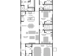 The Cypress, where contemporary elegance meets practical comfort. This thoughtfully designed floor plan offers an inviting blend of open spaces and refined details, making it perfect for both entertaining and everyday living. This layout creates a seamless connection between the kitchen, dining, and living spaces, enhancing the flow and openness of the home. The kitchen is a highlight, featuring a generous island with seating, premium appliances, and ample storage, making it both a functional workspace and a gathering spot.