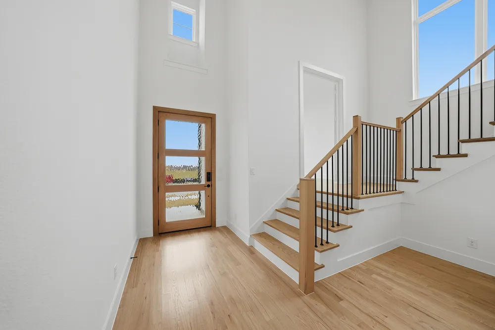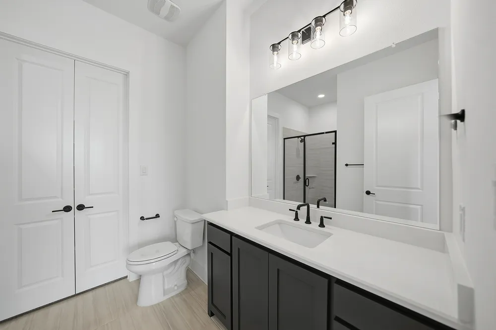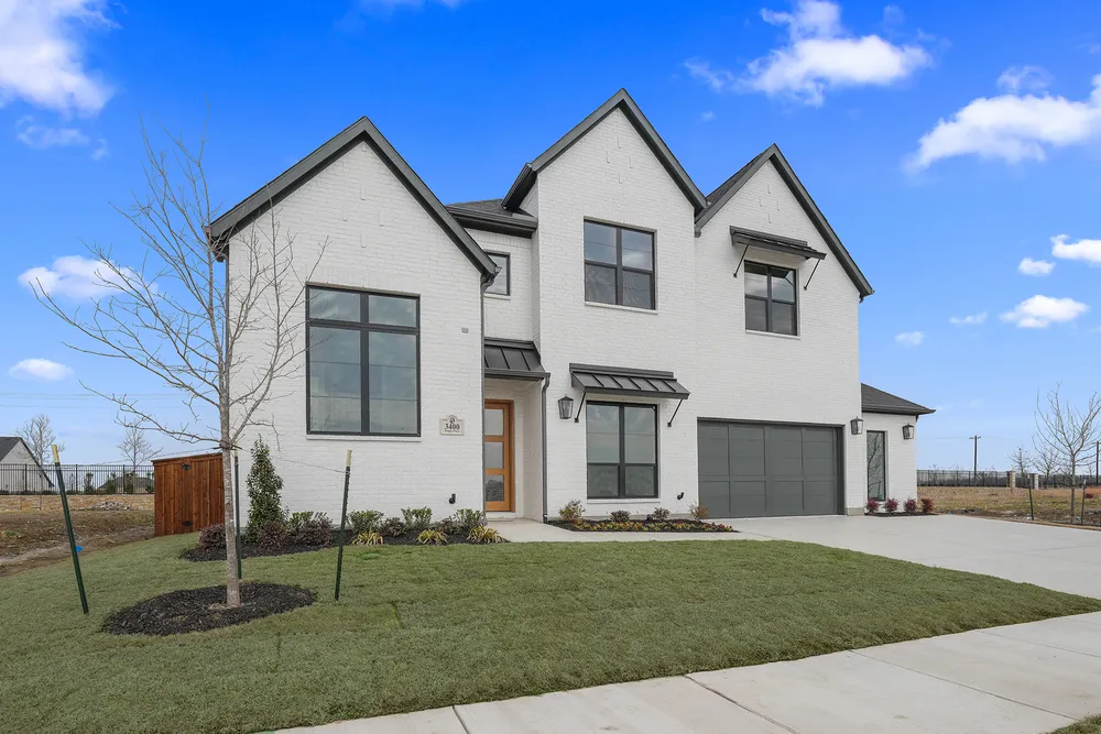 This stunning two-story Shaddock home is a favorite among many and has been showcased in two past and two current model homes. The three-car garage Lakeway plan offers a light and bright open floor plan featuring a show-stopping raised study off the two-story entry, a cathedral vault extending from the family room through the casual dining area, and the latest in trendsetting model home design and architecture. The must-see primary suite includes a standalone tub, oversized shower, his and her vanities, a separate makeup vanity, walk-in closets, and a linen closet. The family room features a 16-foot sliding glass door with windows above for abundant natural light and custom built-in cabinetry. The gourmet kitchen boasts cabinets to the ceiling, Calcatta Luccia quartz countertops, KitchenAid appliances, and a cinder apron-front sink. The exterior showcases white painted brick with black windows, and the laundry room includes mud cubby built-ins, a sink, and extensive cabinetry, making this the home you have been looking for.