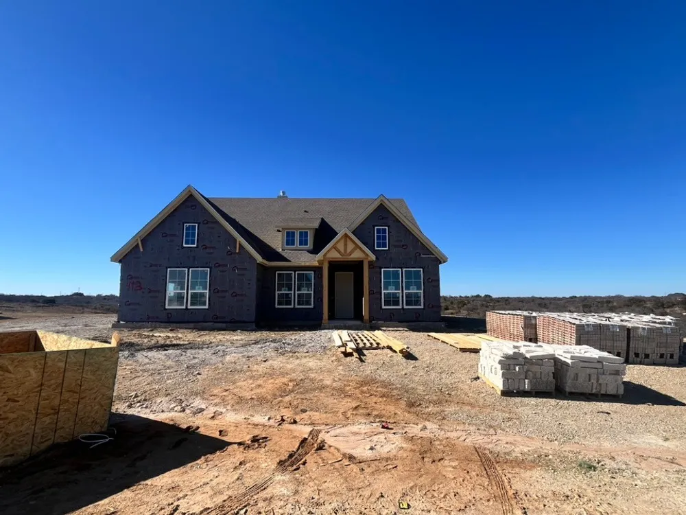 The Verbena floor plan features a modern, open-concept layout and the sought-after features todays homeowners are searching for. With four bedrooms, three bathrooms, and a flex room, this plan boasts just over 2,400 square feet of functional living space. Upon entering the home off the front porch, youre welcomed by an inviting foyer. Immediately to the left is a hallway with a bedroom, walk-in closet and full bathroom, as well as a linen closet. Across the foyer is a flex room, perfect for a home office, formal dining room or whatever need your family has for the space. Past the foyer is the family entry, with storage space and mud bench, which leads to the laundry room and two or three car attached garage. Through the entrance, the home opens up to a large family room with a stately fireplace. Adjacent to the family room is a gourmet kitchen, equipped with a walk-in pantry, ample counter space and an oversized island. Finishing off this open-concept living area is a dining space which overlooks the covered back patio. The remainder of this one-story floor plan is just off the living space. A hall leads to two bedrooms with walk-in closets, another linen closet and a shared full bathroom. The back corner of the home offers privacy for the owners suite, featuring a massive walk-in closet and bathroom with a dual-sink vanity, standalone soaking tub and glass-enclosed shower.