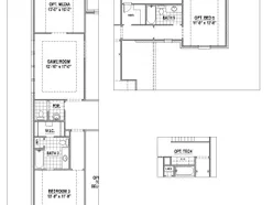 This fantastic home is designed with 5 bedrooms, 5.5 baths, study, media room, oversized outdoor living and a 3-car split garage. Upon entering the large 2-story foyer, you will immediately notice sightlines directly to the back of the home. On your left is a secluded study and a private secondary bedroom with full-size bath and walk-in closet. The spacious family room is bathed in light from the soaring ceilings with high windows. The chef's kitchen is complete with large island and ample counter space including a large walk-in pantry. The main bedroom is ideally situated at the back of the home for maximum privacy and features an amazing en-suite bathroom complete with dual sinks, soaking tub and amazing oversized closet with access directly to the utility room. On the second floor you will find a spacious media room and three secondary bedrooms with walk-in closets, one with a full-size bath. A plan designed to truly fit all your families needs!