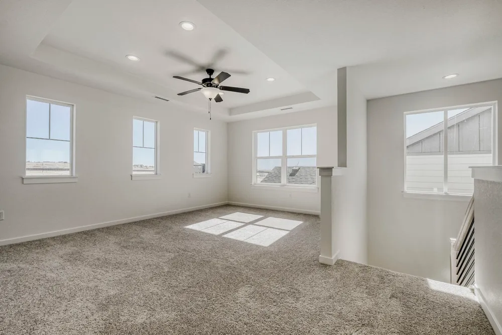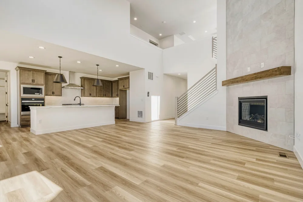 This beautiful two-story home offers 5 bedrooms, 3 full baths, a powder bath and a spacious 3-car garage, all wrapped in an open-concept design filled with style and functionality. A private home study with French doors provides the perfect space for work or quiet retreat, while the expansive family room showcases a striking floor-to-ceiling fireplace. A sliding glass door in the great room opens fully to a covered deck, extending your living space outdoors. The gourmet kitchen features upgraded cabinets, stainless steel appliances, a large center island and a bright dining nook. A mud bench is located just inside the garage entrance for everyday convenience. Upstairs, you'll find two secondary bedrooms with a shared full bath, a generous game room and a convenient laundry room. The main bedroom retreat includes dual vanities, a large soaking tub and two walk-in closets. The finished garden-level basement includes a large rec room, private guest bedroom and full bath. Additional highlights include fully constructed closets with shoe racks, upgraded countertops and fixtures throughout, a tankless water heater and a 96% efficiency-rated gas furnace.
