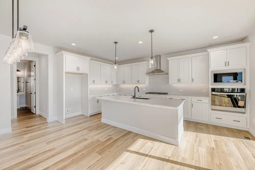 This stunning two-story home offers 6 bedrooms, 5 full baths, a powder room and a 3-car garage. The open-concept main floor features a bright family room with a floor-to-ceiling fireplace, a dining area and a gourmet kitchen with upgraded cabinets, stainless steel appliances and a large island-perfect center for entertaining. A sliding glass door leads to a covered patio and outdoor living space, extending your entertaining area. Also on the main level is a private bedroom with a full bath, ideal for guests or multigenerational living. A powder room and mudroom with a built-in bench are conveniently located near the garage entrance. Upstairs, you'll find two secondary bedrooms with a shared full bath, a spacious loft and a laundry room. The main bedroom suite features dual vanities and a large walk-in closet. The finished basement adds even more versatility with a spacious rec room, a guest bedroom, a full bath and a sleek wet bar. Additional highlights include custom closets with built-in shoe racks, a tankless water heater and a 96% efficiency-rated gas furnace. This home blends comfort, style and functionality throughout.