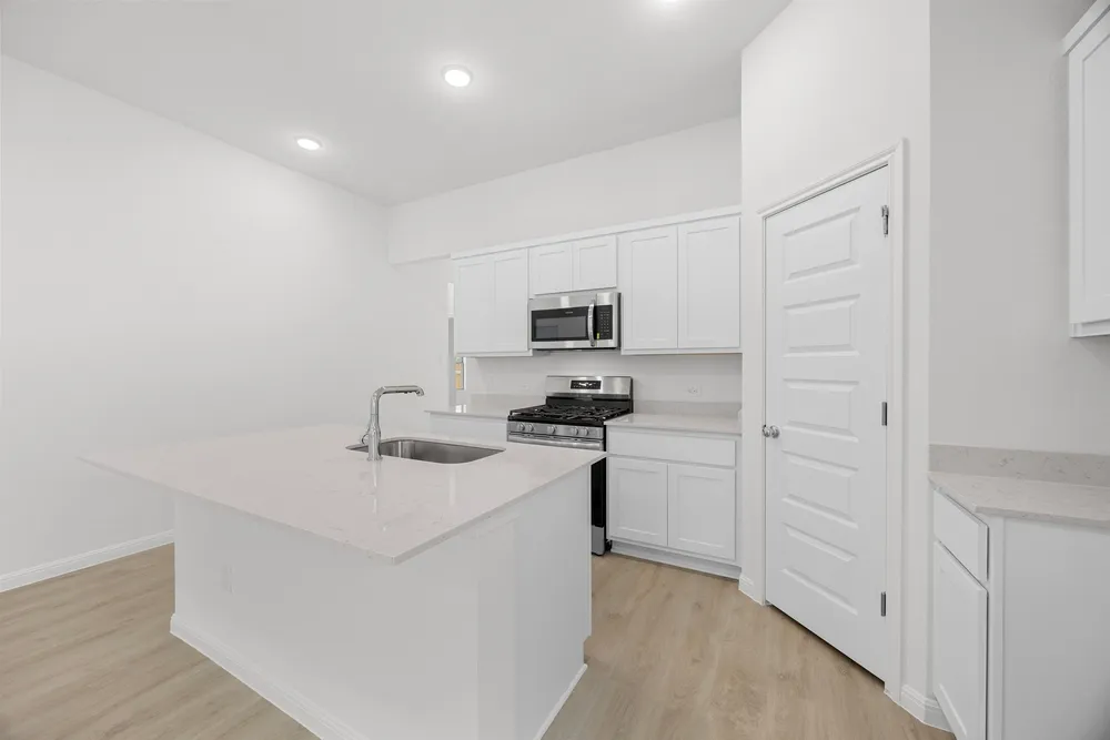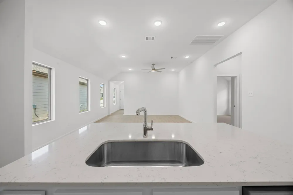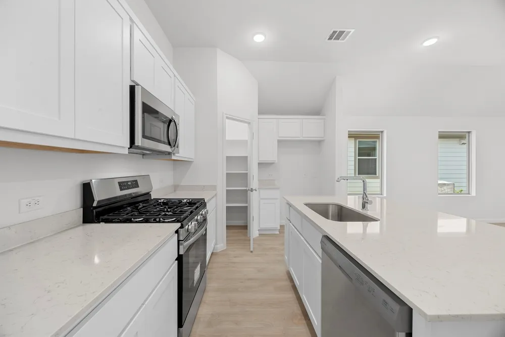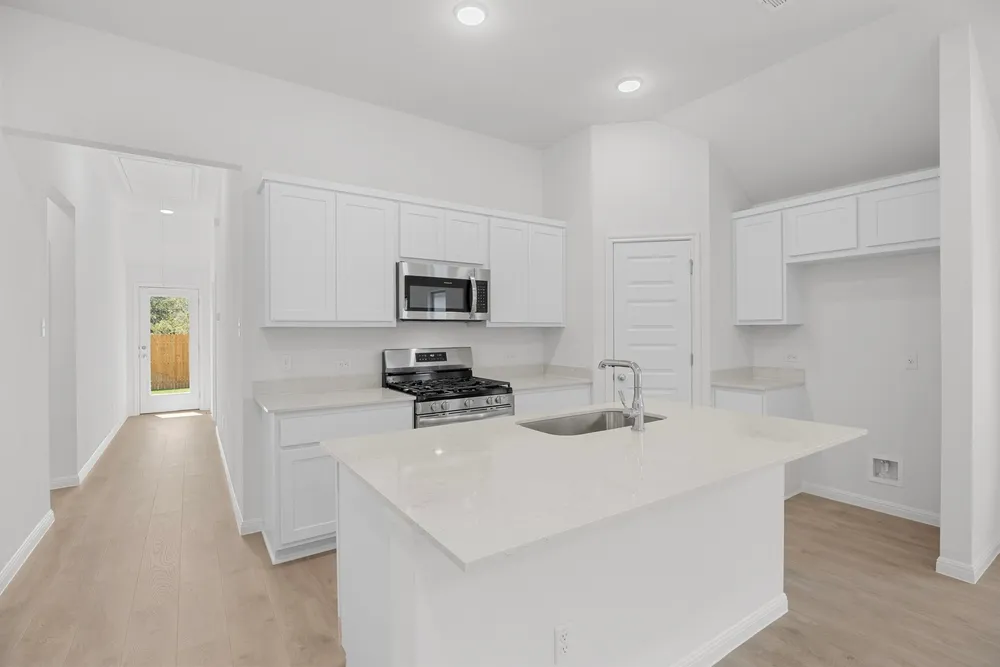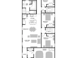 The Cypress, where contemporary elegance meets practical comfort. This thoughtfully designed floor plan offers an inviting blend of open spaces and refined details, making it perfect for both entertaining and everyday living. This layout creates a seamless connection between the kitchen, dining, and living spaces, enhancing the flow and openness of the home. The kitchen is a highlight, featuring a generous island with seating, premium appliances, and ample storage, making it both a functional workspace and a gathering spot.