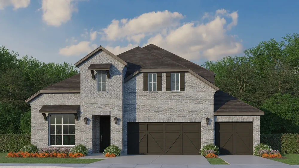 Customer favorite design with 5 bedrooms, 4 full baths, 2 dining areas, study, game room, media room and 3-car garage on a oversized lot. The 2-story foyer opens to the study and formal dining room on one side with the laundry room and garage on the opposite side. A curved staircase leads you to the second floor game room and media room. 2 bedrooms on the 1st floor and the upstairs secondary bedrooms each include a walk-in closet and one includes an en-suite bathroom. On the first floor, when entering the L-shaped kitchen, your breath will be taken away from the abundance of cabinets and the seamless open-concept layout. The casual dining space includes a window seat and leads to the covered outdoor living area. A corner fireplace is the centerpiece of the luxurious family room. The main bedroom is complete with a huge walk-in closet connected to the laundry room and a bay window. This floor plan also includes options to make this home unique for your family.