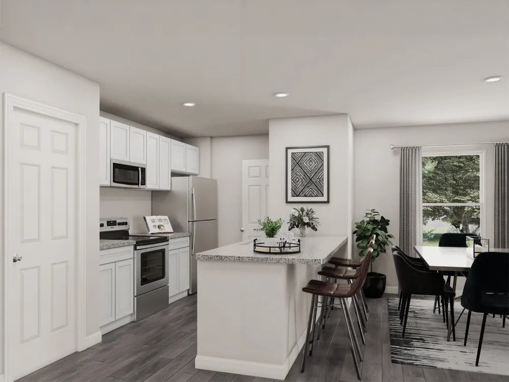 The Washington Plan from our Liberty Series is a thoughtfully designed single-story home featuring 3 bedrooms, 2 bathrooms, a 2-car garage, and 1,209 square feet of functional living space. As you step inside, you’ll find two secondary bedrooms and a full bathroom conveniently located at the front of the home. Continue into the bright and open living area, where the kitchen with a central island seamlessly overlooks the dining area and family room, creating a perfect space for everyday living and entertaining. The laundry room is thoughtfully situated off the kitchen for easy access. The primary bedroom, located at the back of the home for added privacy, features a private bathroom and a walk-in closet, providing a comfortable retreat. Disclaimer: Photos may not represent the actual home. They are for illustrative purposes only and may depict a similar home with the same floorplan.