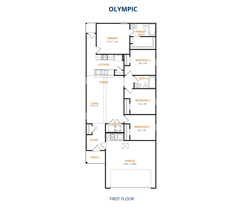The Olympic Plan from our Freedom Series offers a versatile 4-bedroom layout within a well-designed single-story home featuring 1,113 square feet of living space and 2 full bathrooms. The foyer leads into an open-concept living, dining, and kitchen area that serves as the home’s main gathering space. The kitchen is designed with a central island, adding workspace and creating a welcoming spot for meals and conversation. The primary suite is set apart from the secondary bedrooms and features a comfortable bedroom, a walk-in closet, and a private full bath. Three additional bedrooms share a centrally located full bath, offering flexibility for family members, guests, or a dedicated office or hobby room. With its spacious common areas, flexible bedroom arrangement, and efficient layout, the Olympic provides a comfortable blend of functionality and value in a single-story footprint. Start your journey to homeownership today! Disclaimer: Photos may not represent the actual home. They are for illustrative purposes only and may depict a similar home with the same floorplan.