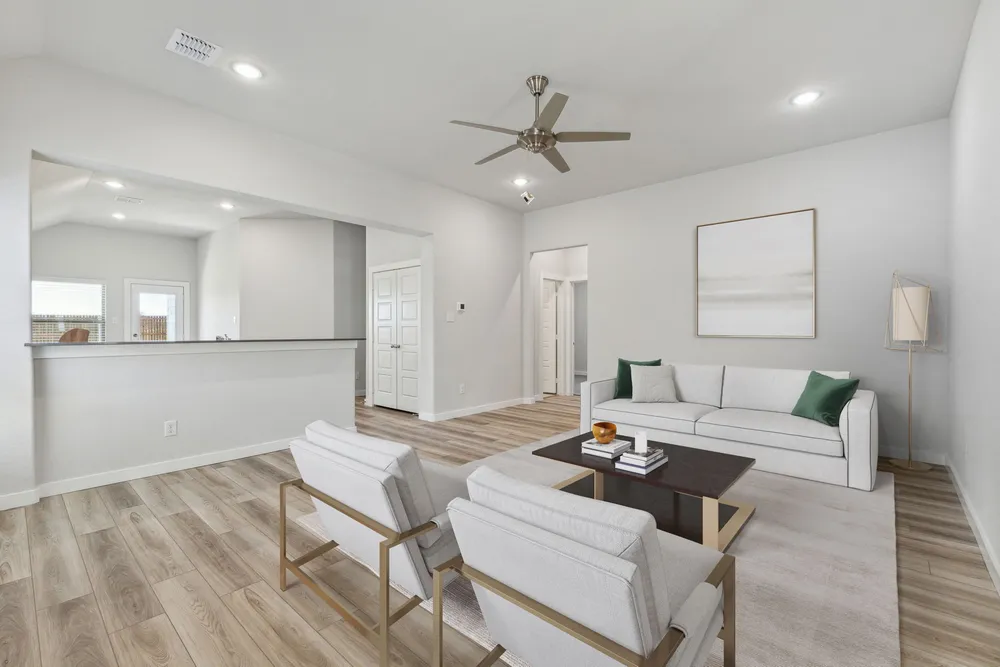 The Amber is a graceful design capturing the natural beauty of the gem it is named for. Invite them in to enjoy the comfort of your radiant living room. There's always room for one or two more friends at the dinner table. Surround yourself in the warmth of the cheery kitchen and snug breakfast nook. You'll have a perfect view of the art gallery that is your refrigerator. After dinner, it's story time followed by a bath once you've given your mouse a cookie. Fall asleep in your gorgeous primary suite, knowing today was a rewarding day!