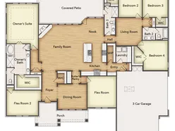 Discover the allure of the Foxglove, an epitome of sophistication and comfort crafted by Riverside Homebuilders. This luxurious one-story abode spans 3,497 square feet, offering 4 bedrooms and 3 bathrooms, meticulously designed for modern living. With a 3-car garage and a thoughtful layout, convenience and elegance seamlessly intertwine to create an unparalleled living experience. As you step through the front porch, you're greeted by an open and airy foyer, setting the tone for the home's inviting atmosphere. To the right, a luminous dining room awaits, perfect for hosting memorable gatherings with friends and family. Adjacent to the foyer, discover two versatile flex rooms, adaptable to your every needwhether it be a home gym, office or creative space. Continue through to the heart of the home, where the magic unfoldsa sprawling family room adorned with a cozy fireplace, nestled near a charming nook and a chef-inspired kitchen boasting ample counter space and storage areas. On the right side of the home, three traditional bedrooms each feature a walk-in closet and are accompanied by two bathrooms for utmost convenience. The laundry room further enhances functionality, making chores a breeze. For added entertainment, indulge in the media room, ensuring every member of the family has a space to fulfill their passions. On the opposite side, the owner's suite awaits, offering a sanctuary of luxury with top-quality features, a stunning owner's bath and an incredible walk-in closet. Lastly, step outside to the covered back patio, where you can bask in the gorgeous DFW weather and embrace outdoor living at its finest. In the Foxglove, luxury, convenience and versatility converge to create the perfect haven for modern living.