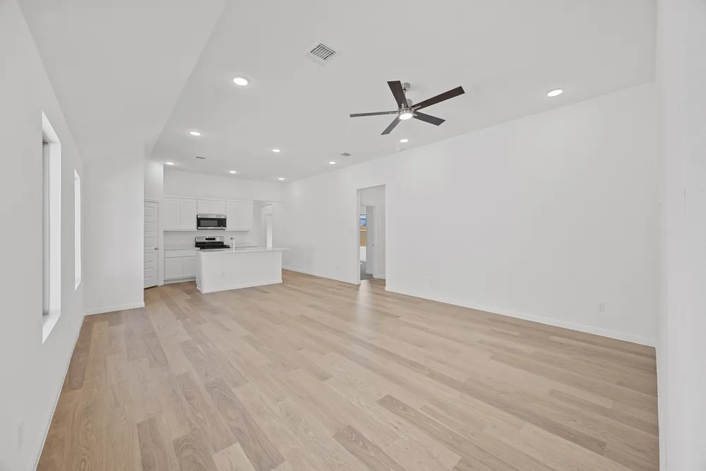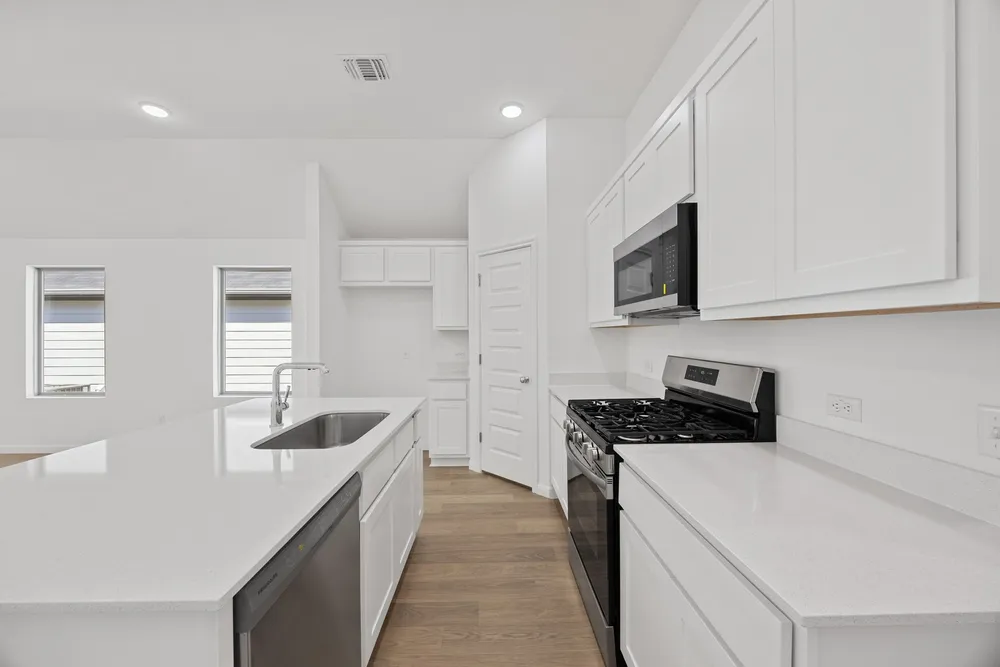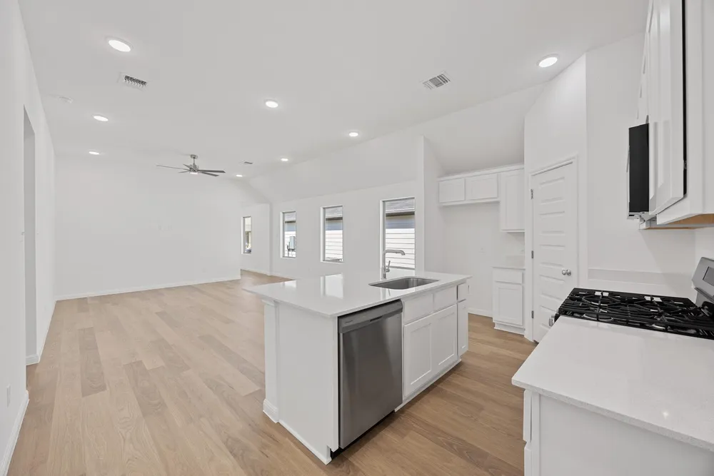 The Cypress, where contemporary elegance meets practical comfort. This thoughtfully designed floor plan offers an inviting blend of open spaces and refined details, making it perfect for both entertaining and everyday living. This layout creates a seamless connection between the kitchen, dining, and living spaces, enhancing the flow and openness of the home. The kitchen is a highlight, featuring a generous island with seating, premium appliances, and ample storage, making it both a functional workspace and a gathering spot.