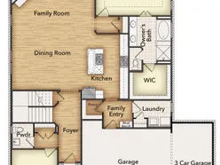 The four-bedroom Nueces floor plan is 2,858 square feet of functional living space. This two-story home was designed with every kind of homeowner in mindit exemplifies the importance of togetherness by offering spaces for families to gather, as well as spacious bedrooms so every person has an area to call their own. Upon entering the home from the two-car garage, youll walk through the mudroom with a built-in storage bench and pass the walk-in pantry and separate laundry room. The gourmet kitchen includes an island with overhang for seating, extravagant storage options and lots of counter space. Past the kitchen is the open-concept dining and family room that can be laid out to meet the needs and style preferences of your family. Through a short hallway youll find the oversized owner suite with a double-sink bathroom, soaking tub, separate shower and walk-in closet. Finishing off the main floor is a powder room and a flex room toward the front of the house that can be used as a home office, virtual learning space or playroom. The second floor opens up to a multi-purpose loft that would make a perfect second family room. It also includes three bedrooms, each with their own walk-in closets, two full bathrooms and an additional storage closet. Outside spaces include a welcoming front porch and large covered patio adjoining the back of the house.