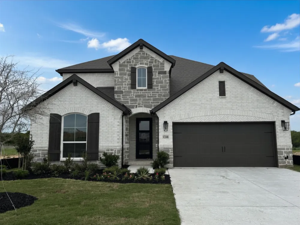 This gorgeous brick and stone home features 4 bedrooms, 3 bathrooms, study, game room and media room offering plenty of room for living and entertaining. As you step inside, you will love the open floor plan that brings together the living, dining and kitchen area, creating a welcoming space for gatherings. The kitchen is a dream with its stainless steel appliances, custom cabinetry, upgraded quartz countertops and lighting. The first floor main bedroom features an en suite bathroom with separate vanities and an oversized shower with detailed tile work. A second bedroom downstairs provides the perfect guest room or a bedroom for a young child. The additional second floor bedrooms and bathroom are spacious and versatile, providing flexibility for your lifestyle needs. Enjoy family time in the game room with an open rail or the spacious media room. Upgraded wood flooring begins at the front door and continues through the entry, down the hallway into the family room, kitchen and dining area. It also includes a 2-car garage with storage space. This beautiful home is on a Greenbelt Lot!