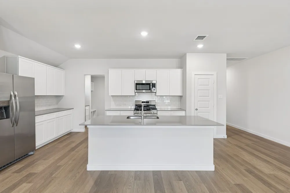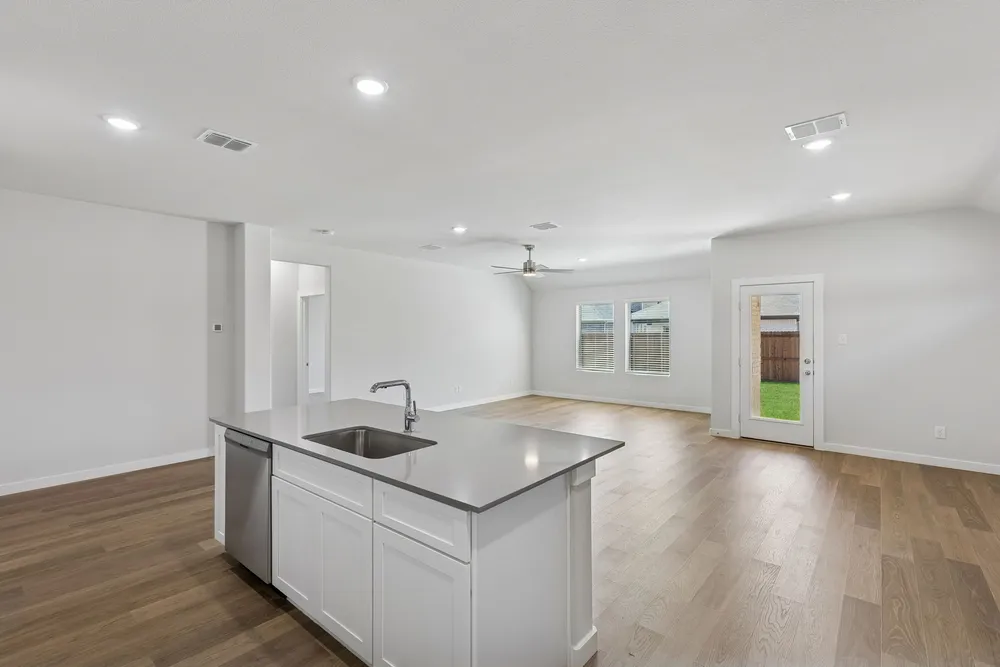 Meet the Harrison, a three bedroom, two bathroom home blending cozy living with modern touches. A spacious primary bedroom with a walk-in closet and an en-suite bath is complemented by two secondary bedrooms, perfect for guests. The large family room opens to a contemporary kitchen, ideal for both relaxed weekends and casual entertaining.