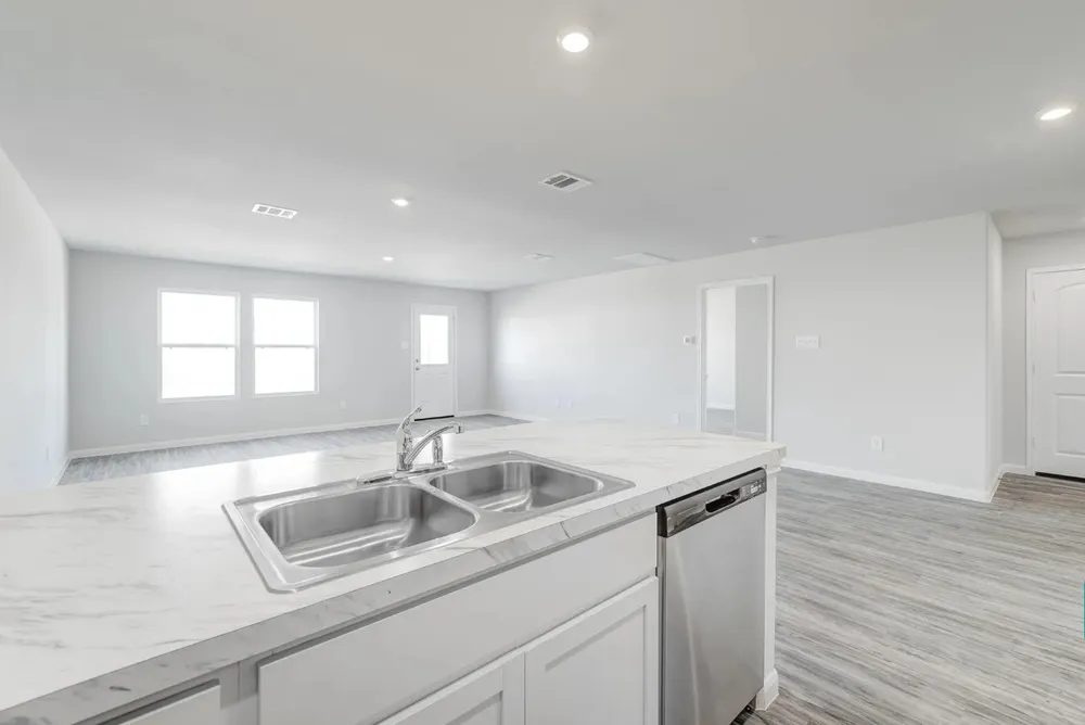 Model 2408 A1 - Big Bend The Big Bend plan features 5 bedrooms, 2.5 bathrooms, a 2-car garage, and 2,408 square feet of thoughtfully designed 2 story living space.As you step into the welcoming entryway, you will find a convenient half bathroom and the staircase leading to the upper level. Continue down the hall past the stairway and you will find an open concept living and dining area on the main floor. The kitchen, complete with a central island, overlooks the dining and living room, creating a perfect space for meals and family time. Off the living room, you will also have a downstairs bedroom perfect for guests or a study. Upstairs, the primary suite offers a private retreat with its own bathroom. Four additional bedrooms, a laundry room and a full bathroom complete the upper level, providing ample space for family or guests.