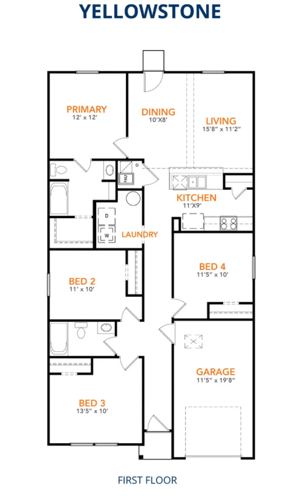 The Yellowstone Plan from our Freedom Series is thoughtfully designed for comfort and convenience, offering 4 bedrooms, 2 bathrooms, and 1,401 square feet of single-story living. As you enter the home, you’ll find three secondary bedrooms and a full bathroom, perfectly positioned to provide privacy and flexibility for family members or guests. Continue down the hall, and you’ll pass the conveniently located laundry room before reaching the heart of the home. The open-concept kitchen, complete with a central island, seamlessly overlooks the family room and dining area, creating a welcoming space for family time, meals, and for entertaining. Tucked off the dining area, the primary suite features a private bathroom and walk-in closet, offering a peaceful retreat from the rest of the home.