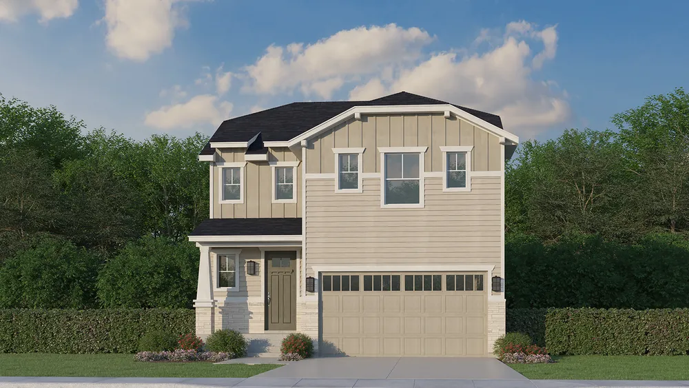 This distinctive 2-story home combines comfort and style with a functional layout, perfect for modern living, and the designer upgrades will be sure to capture your attention. The inviting front porch is a thoughtful touch that welcomes you into an open main level that seamlessly integrates the kitchen, dining area and family room, creating a warm and spacious atmosphere. A convenient powder bath is also located on this floor and there's a cozy fireplace too, for added charm. The functional kitchen layout offers plenty of counter space for entertaining, and don't forget about all of the enjoyment you'll experience in your fully landscaped yard with rear privacy fencing. Upstairs, you'll find a versatile loft space, ideal for recreation or relaxation. The spacious primary bedroom is a serene sanctuary, with a large bathroom that includes an upgraded 5-piece bath. Two additional bedrooms, a full bathroom and a well-placed laundry space complete the upper level. A 2-car attached garage with an 8' door and a garage opener ensures ample parking and storage, making this home as practical as it is beautiful. You'll love the distinctive exterior with added stone. This home offers flexibility and timeless appeal. Call us to see for yourself!