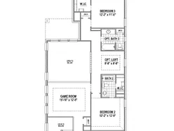 Great 2 story design with 4 bedrooms, 3 full baths, 1 powder bath, 1 dining area, optional mud bench, game room, optional loft area, outdoor living space and 2-car garage set on a North facing interior home site. Home features a Transitional Modern elevation with light colored brick with gray trim and black shingles. Be impressed by the spacious main bedroom on the first floor with oversized frameless shower and dropped tile pan and extra long quartz vanity with split sinks. Soaring ceilings are in foyer and family room, bountiful windows throughout offering loads of natural light plus 3 spacious secondary bedrooms upstairs with walk-in closets. Amenities include utility room sink area, accent painted furniture island, decorative kitchen wood hood, beautiful tiles, matte black plumbing and lighting fixtures, quartz kitchen counter tops and beautiful natural colored pre-finished wood floors in all main areas downstairs. Optional open loft area upstairs spaced between bedrooms makes for a perfect homework or study area.